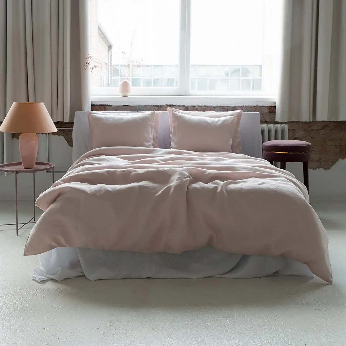 Komplet pościeli z lnu z kolekcji Basic w kolorze przygaszonego różu, określanego również jako pudrowy róż. Lniana pościel w kolorze subtelnego różu pięknie wygląda w kobiecej, czy dziewczęcej sypialni, wnosząc romantyczny look. Dobierz do kompletu prześcieradło lniane różowe lub prześcieradło białe. Możesz też przełamać różową pościel poduszką w kolorze szarym lub granatowym. A jeżeli wolisz delikatne klimaty - dobierz poduszki w kolorze kremowo białym lub poduszki z falbankami.