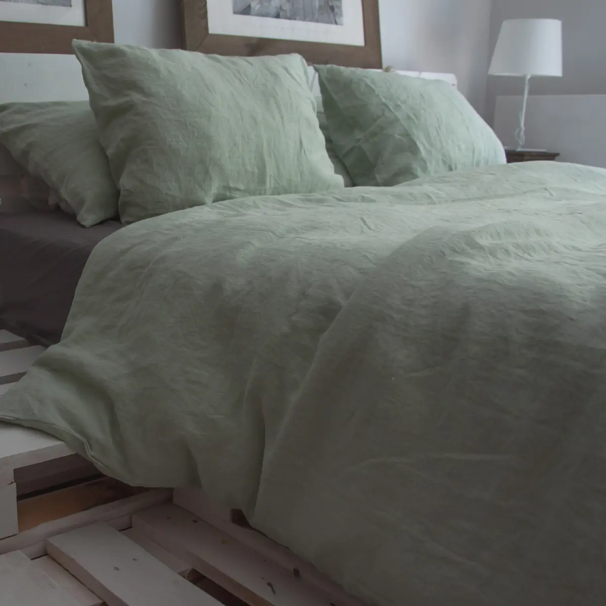 lniana pościel 160x200, 2x 70x80 cm PURE sage green, jasny zielony , komplet