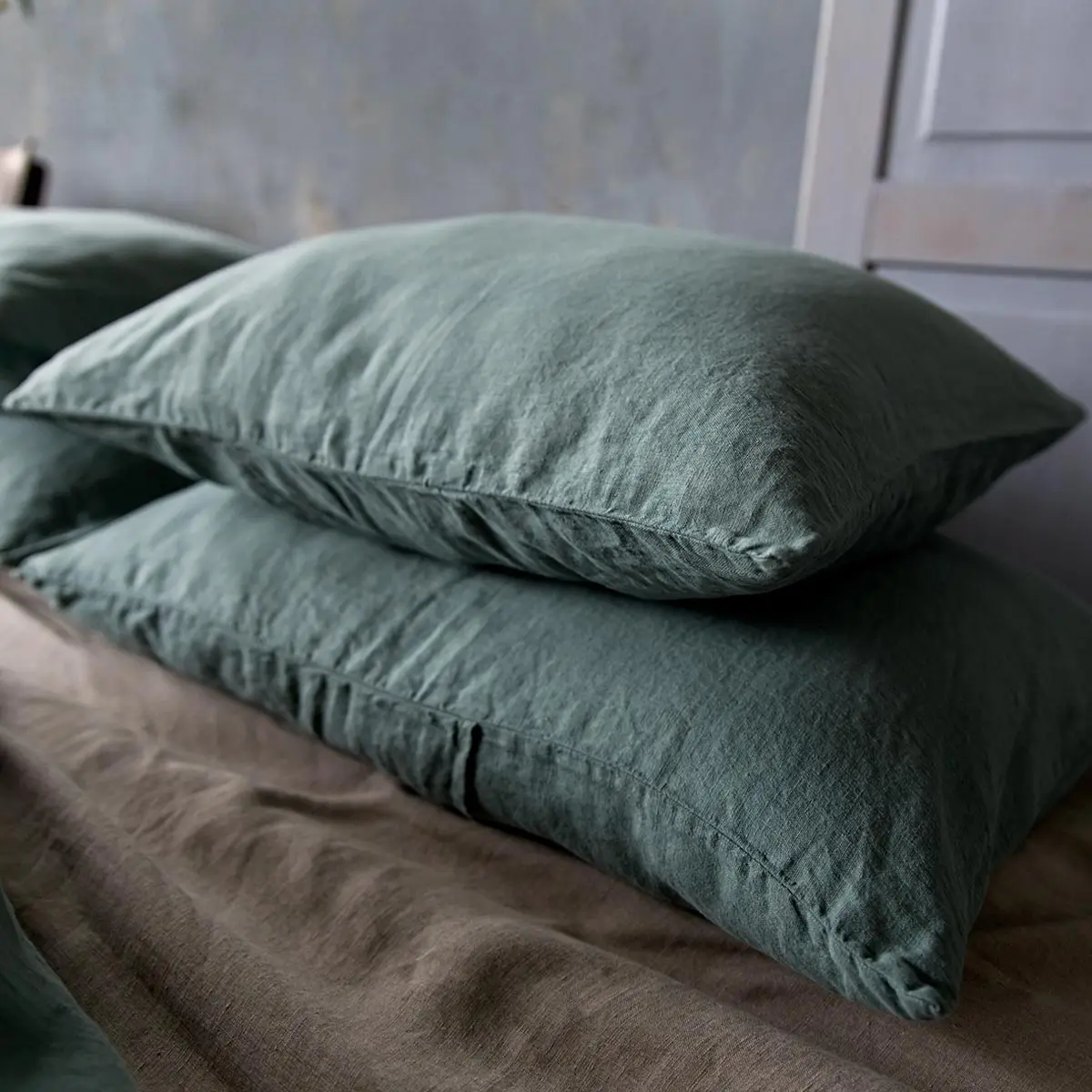 lniana pościel zielona eukaliptusowa 200x200 cm, 2x 50x70 cm