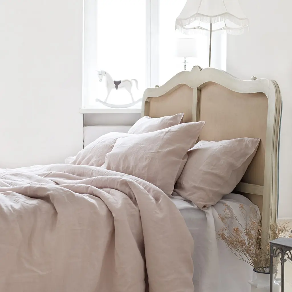 Komplet pościeli z lnu z kolekcji Basic w kolorze przygaszonego różu, określanego również jako pudrowy róż. Lniana pościel w kolorze subtelnego różu pięknie wygląda w kobiecej, czy dziewczęcej sypialni, wnosząc romantyczny look. Dobierz do kompletu prześcieradło lniane różowe lub prześcieradło białe. Możesz też przełamać różową pościel poduszką w kolorze szarym lub granatowym. A jeżeli wolisz delikatne klimaty - dobierz poduszki w kolorze kremowo białym lub poduszki z falbankami.