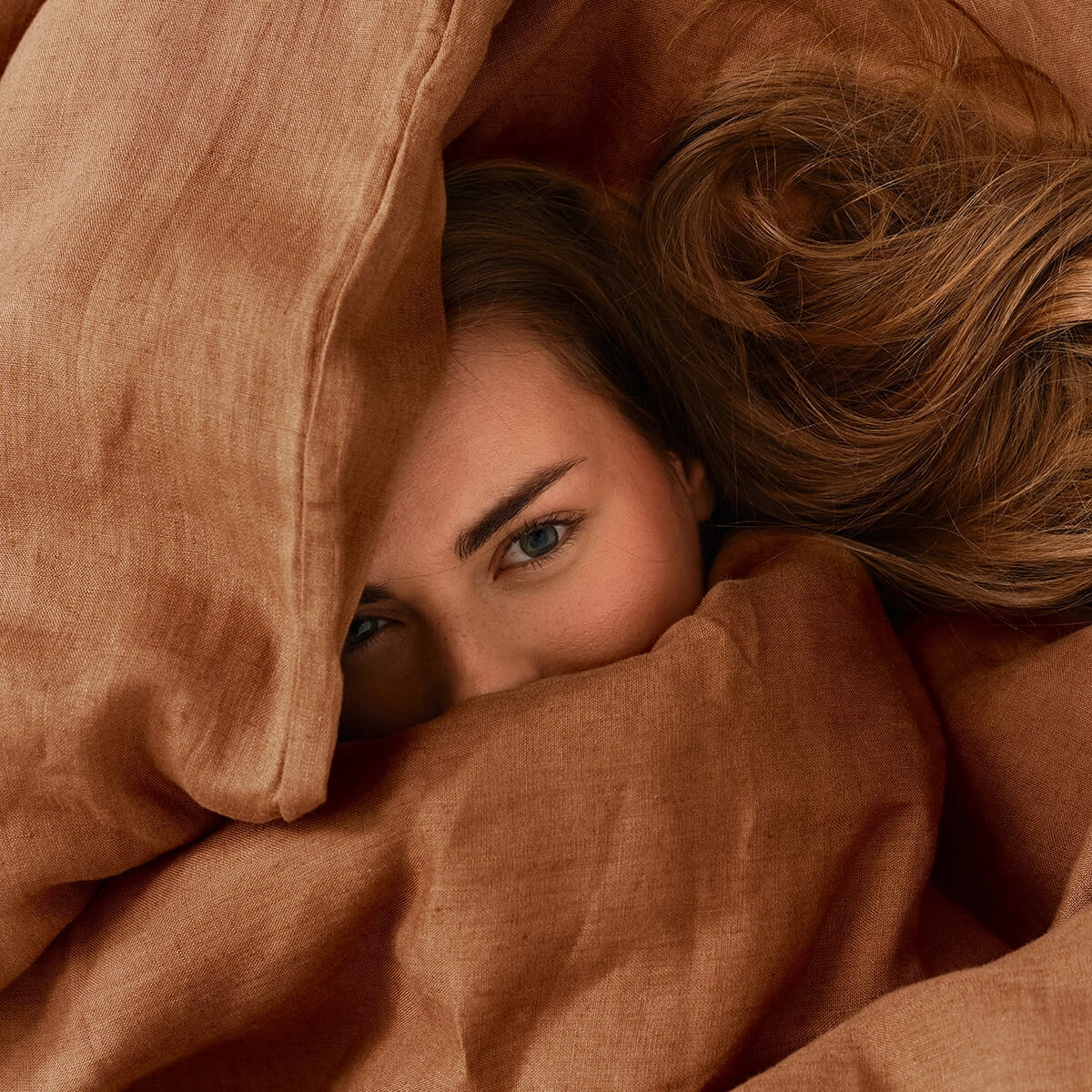 Komplet pościeli lnianej URBAN cinnamon 220x200cm z dwoma poszewkami na poduszkę 50x70cm