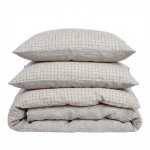 lniana pościel GRID natural brown 140x200 cm, 50x60 cm w małą kratkę, komplet