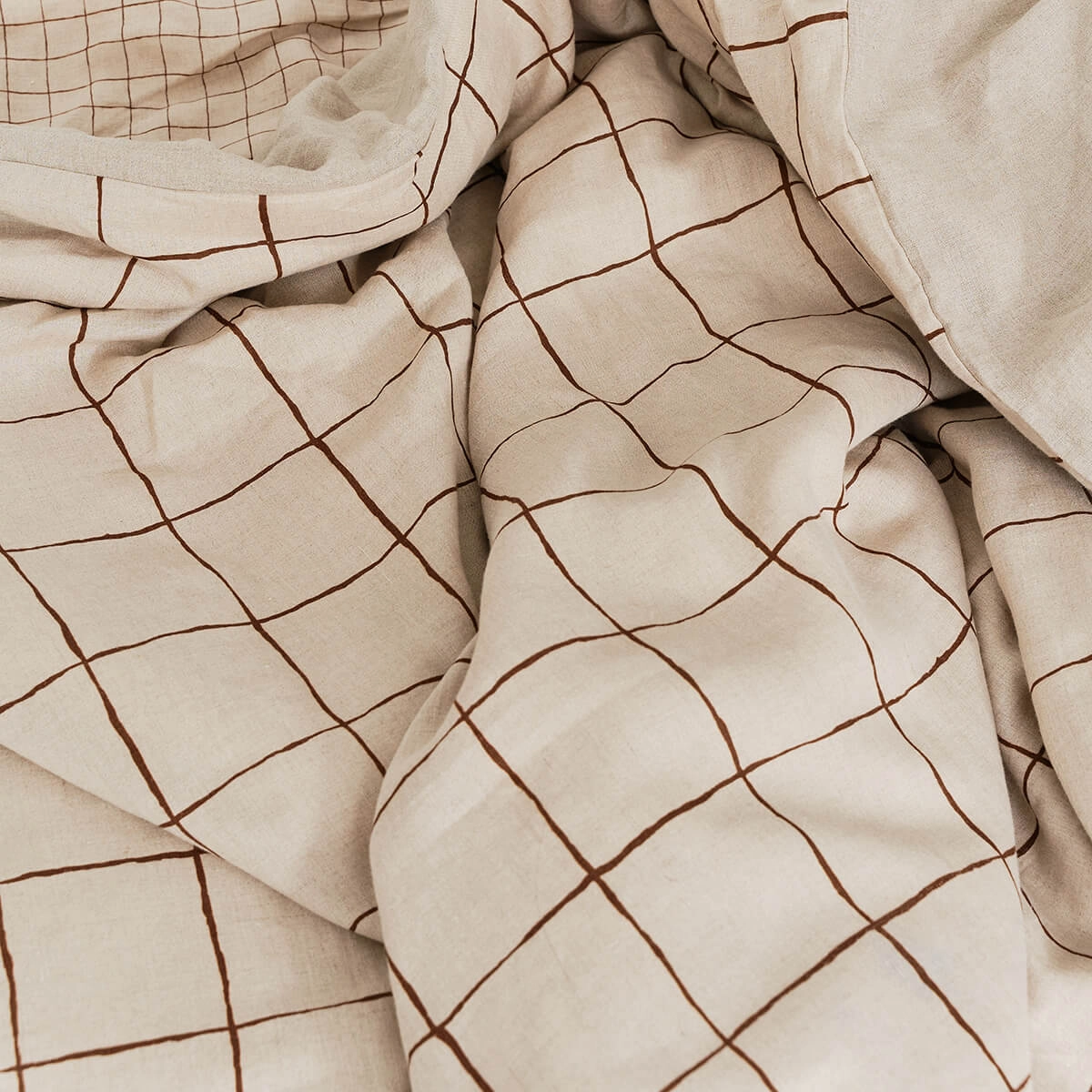 Lniana poszwa na kołdrę GRID Natural Brown została uszyta z 100% europejskiego, lnu stonewashed, o naturalnym, ciepłym odcieniu. Duża brązowa krata nadaje jej nowoczesny, a jednocześnie ponadczasowy charakter – minimalistyczny, spokojny i bardzo elegancki.