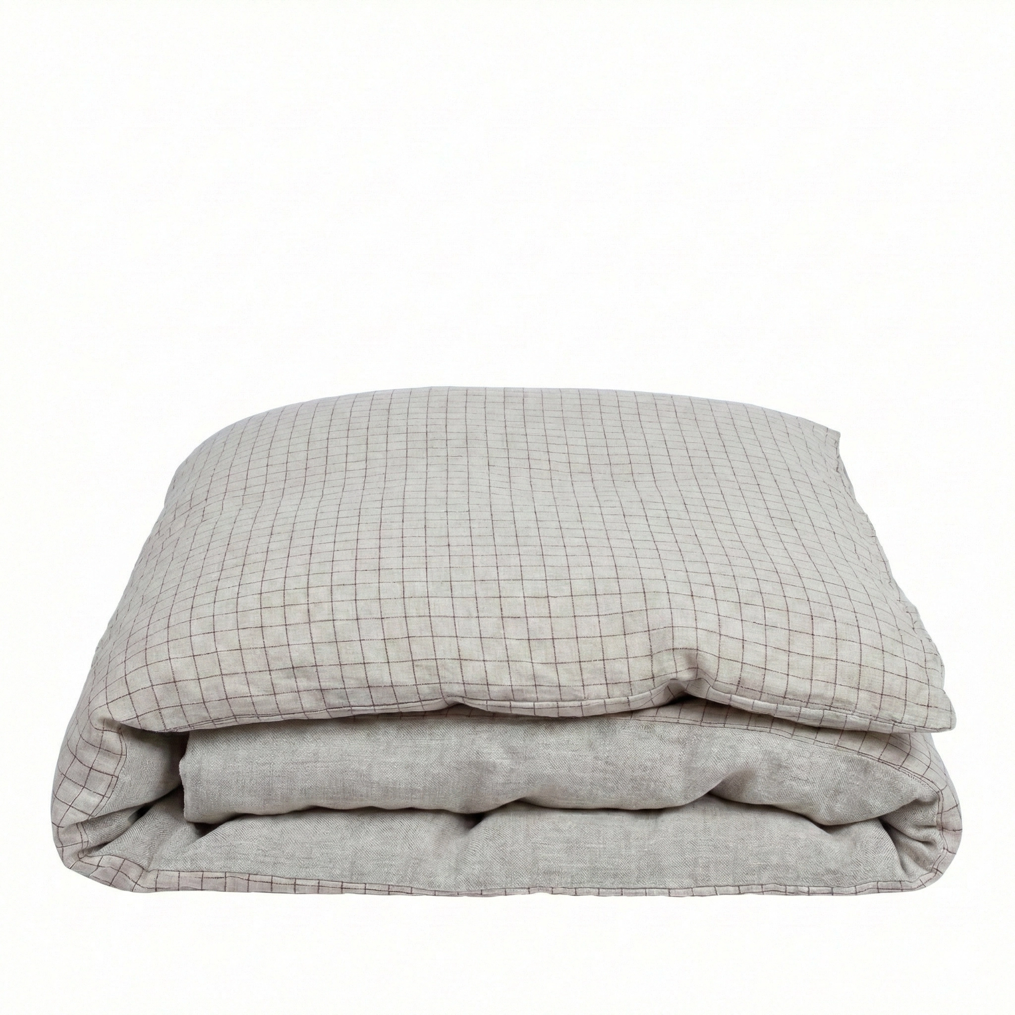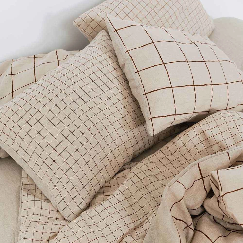 lniana poszwa na kołdrę GRID 240x220 cm natural chocolate brown, w małą kratkę