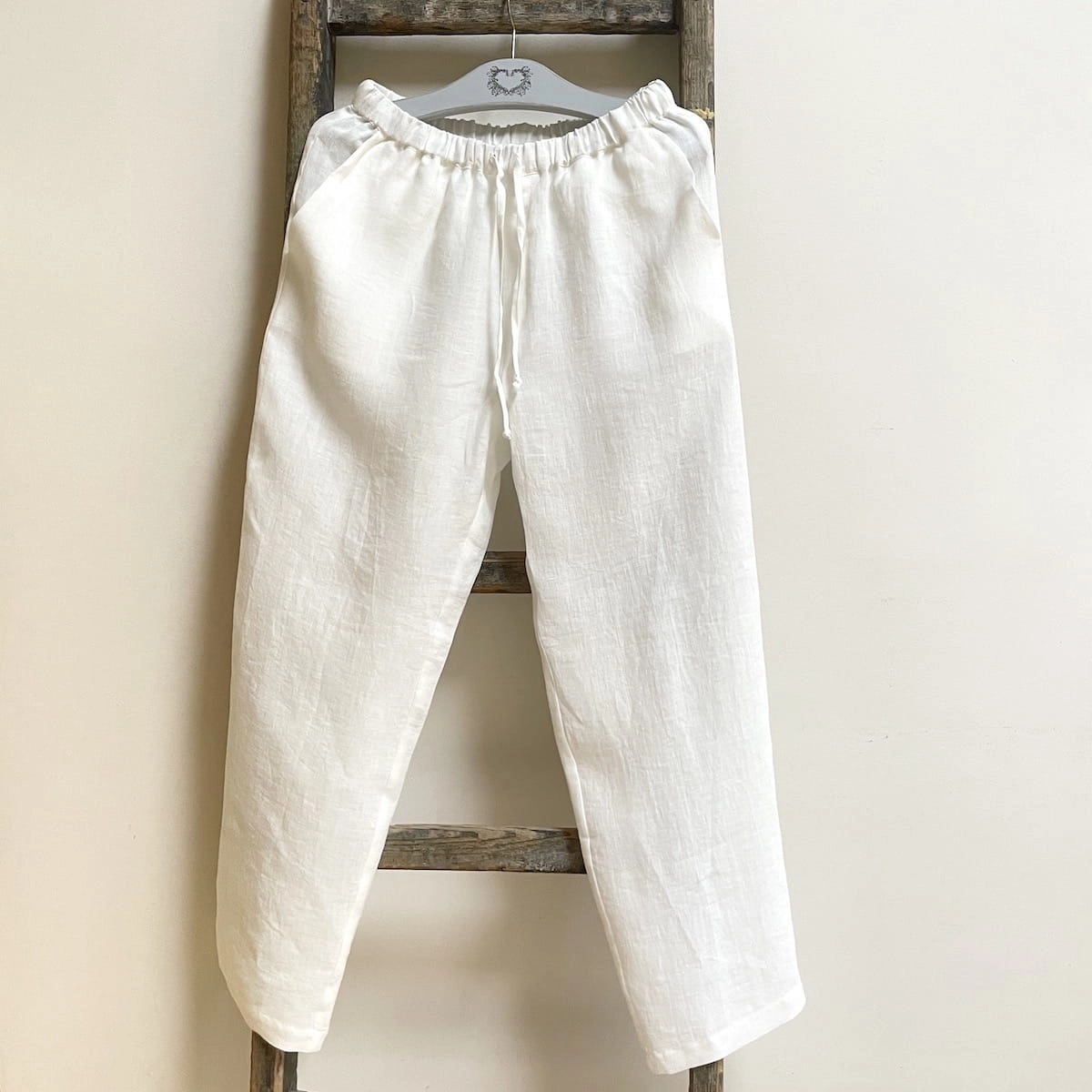lniane spodnie CHERRY kremowo biale
