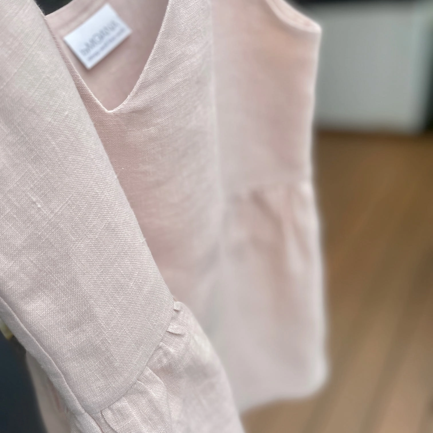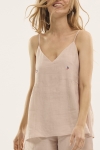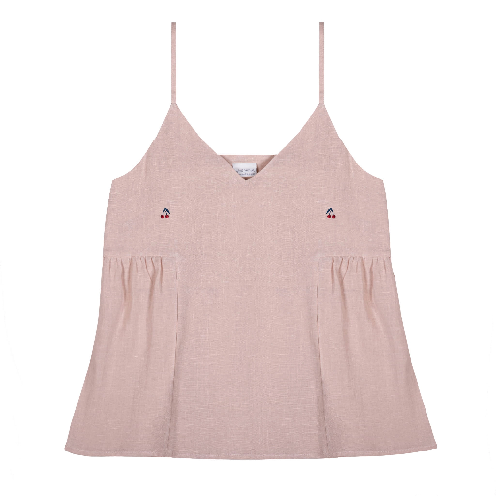 Delikatny lniany top na ramiączkach w beżowo różowym kolorze to sposób, by oddać się w ręce Morfeusza i wkroczyć w świat sennych marzeń. To także idealny wybór na dzień. Top świetnie sprawdzi się podczas letnich spacerów, wakacji, czy pobytu na plaży. Bluzka została ozdobiona wyhaftowanymi wisienkami, które nadają całości lekkości. Naturalne lniane piżamy otulają ciało i skłaniają do tego, by troski zostawić za drzwiami sypialni. Wszystkie lniane tekstylia Moana wykonane są z wysokiej jakości biodegradowalnego lnu europejskiego. Lniany top ma regulowane ramiączka i dodatkową warstwę materiału na wysokości biustu. W tej kolekcji dostępne są także lniana koszula różowa, lniane szorty różowe,oraz lniane spodnie różowe.