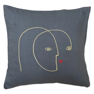 Lniana poszewka na poduszkę z kolekcji NATURALNIE O MIŁOŚCI w kolorze ciemnoszarym z haftowanym motywem połączonych twarzy. To przepiękne, graficzne odwzorowanie twarzy jest wyhaftowane złotą nitką. Poszewka dekoracyjna może również być wspaniałym uzupełnieniem kompletu pościeli.Inspiracją dla powstania tego projektu jest myśl związana z miłością. Miłością ogólnie pojętą. Umieszczenie wzoru na lnie, jednym z najbardziej naturalnych materiałów, podkreśliła jeszcze bardziej wymowność tego projektu. Kolekcja pościeli dla tych, którzy mówią o miłości bez tabu.