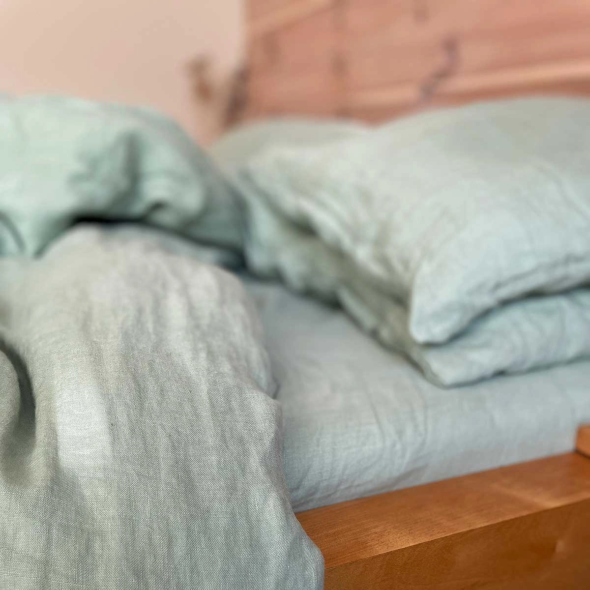 lniane prześcieradło z gumką PURE sage green, jasno zielony