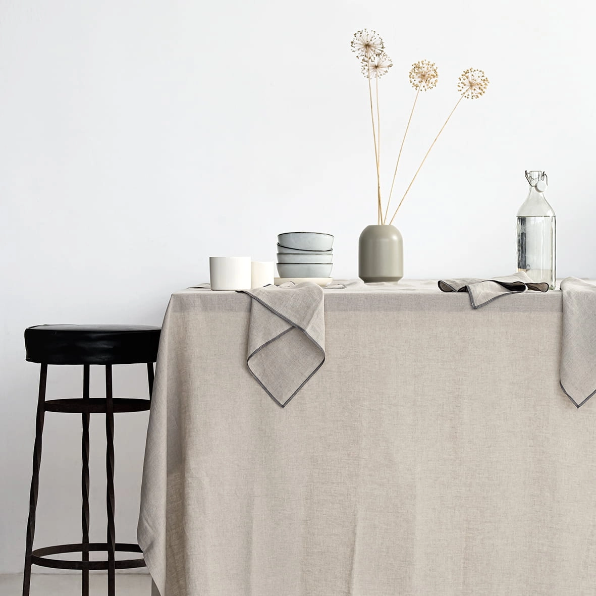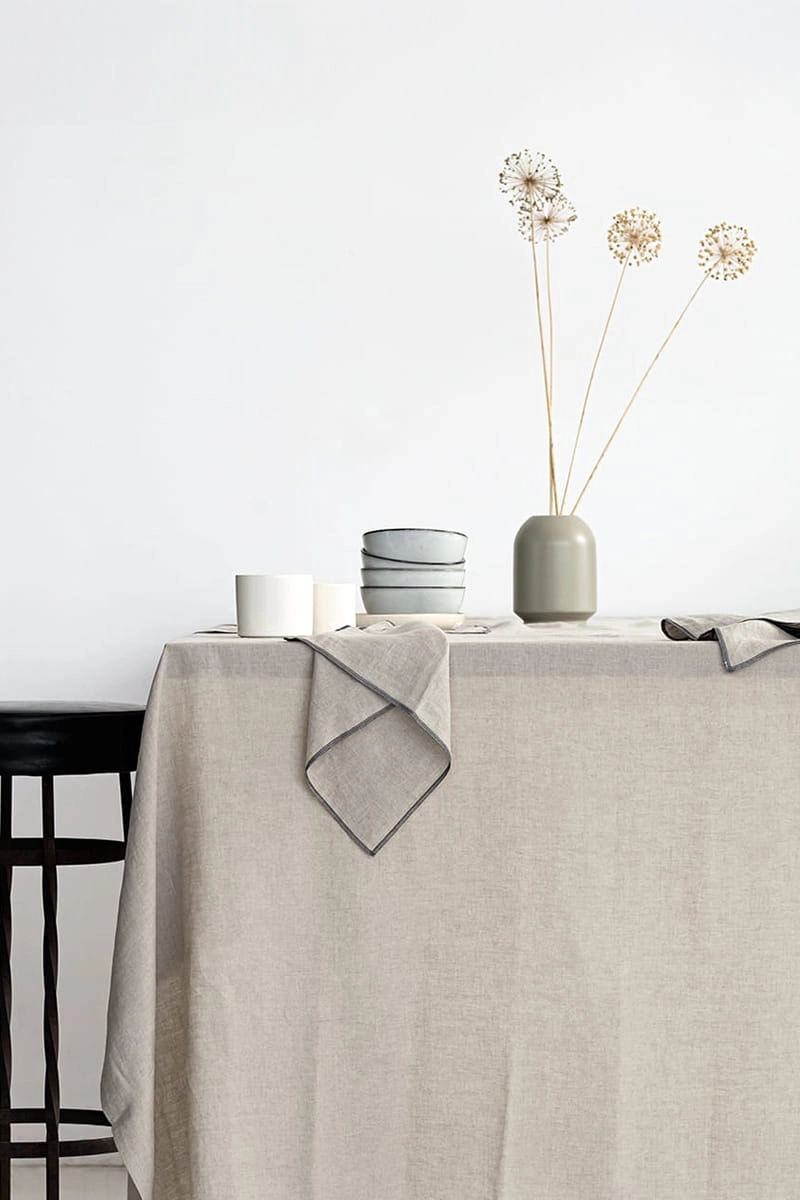 Obrus uszyty ze spieranego, lnu europejskiego, który jest materiałem naturalnym i biodegradowalnym. Certifikowany OEKO-TEX.